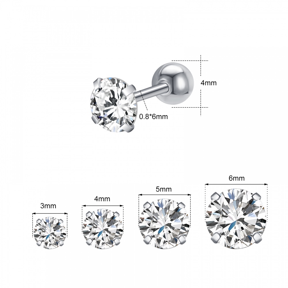1 Pc 3/4/5/6MM Stainless Steel Round Stud Earrings Gold Crystal Cartilage Stud Earring Tragus Conch Helix Piercings