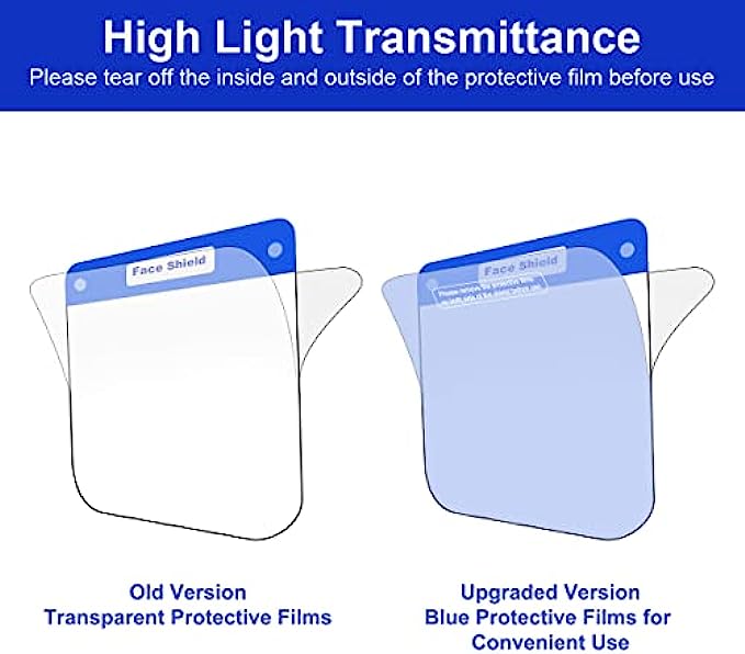 • 【HD Transparent & Anti-fog】The safety face shield is features with high light transmission which is up to 99.8%, and it's really fog resistant. It's perfect to indoors and outdoors use to protect you to the greatest extent without eyesight matters(Note: Please remove the protective cover oncover on both sides of the mask before use).