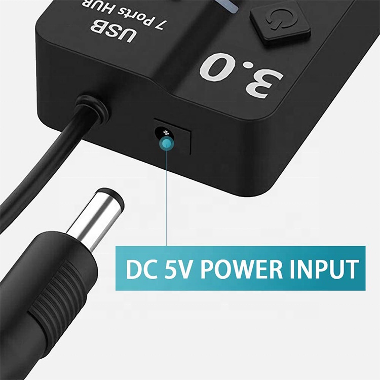 7 Port USB3.0 Adapter Portable USB Multiport Usb Hub USB 3.0 Ports Hub with Individual Switches LED Converter 5Gbps Data Transfer for Laptop PC