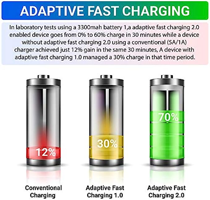 • Adaptive Fast Charging : Adaptive Fast Charger Charges From 0 to 50% in Just 30 Minutes, 75% Faster Than Standard Chargers