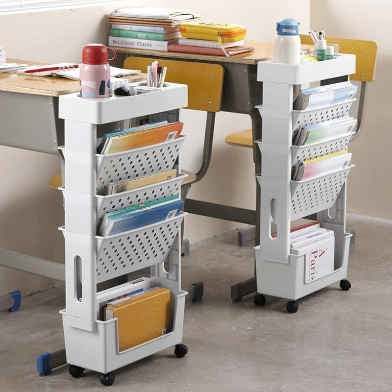 Movable Bookshelf Book Storage Shelf Side Table with wheels Student Book Desk Bookshelf Office Desk Bookshelf