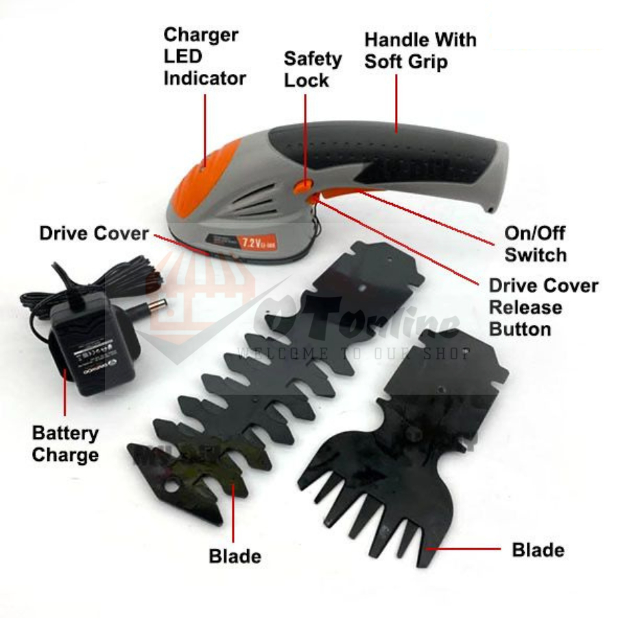 DAEWOO Grass Trimmer 7.2V Cordless Grass & Shrub Shear Hedge Trimmer Rechargeable Garden Grass Cutter