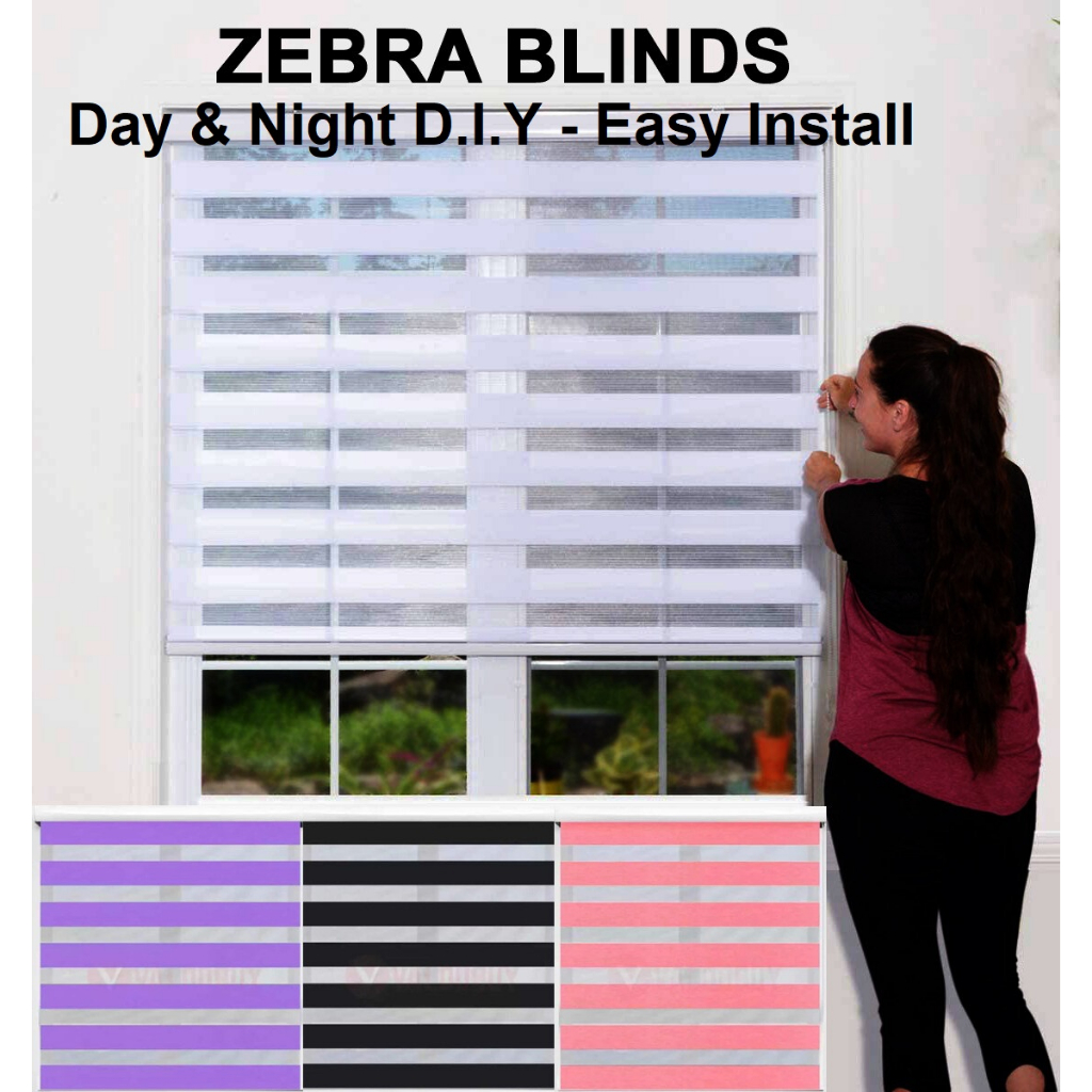 ? Day & Night Zebra Roller Blinds Window Blind - Available in 9 Colors, 5 Sizes - Easy to Install - D.I.Y. (SHM168)