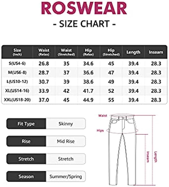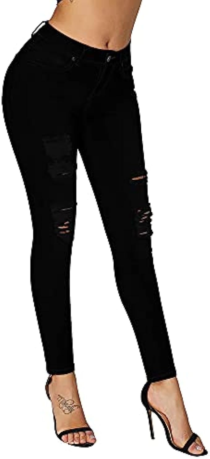 roswear Women's Essentials Ripped Mid Rise Destroyed Skinny Jeans