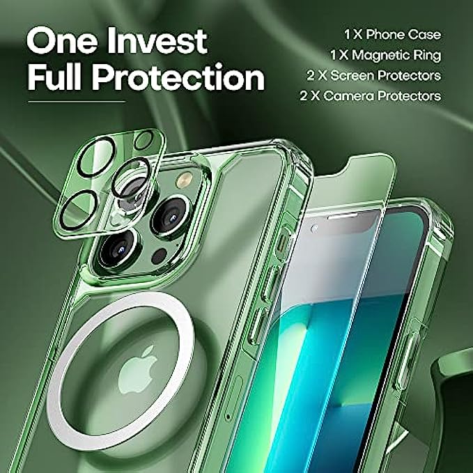 • ?【3-in-1 360° Full Protection】TAURI iPhone 13 Pro Max case with 2 screen protectors and 2 camera lens protectors can provide a 360° all-around protection for your phone. The 3-in-1 case adopts a multi-layer buffer structure to effectively absorb impact and protect the phone, screen, and camera.