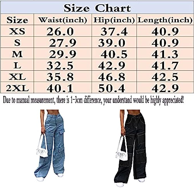 • High waisted wide leg cargo jeans, designed with classic pocket on the front and and flap pocket, zip fly with button closure, full length, relaxed fit boyfriend jeans for teen girls